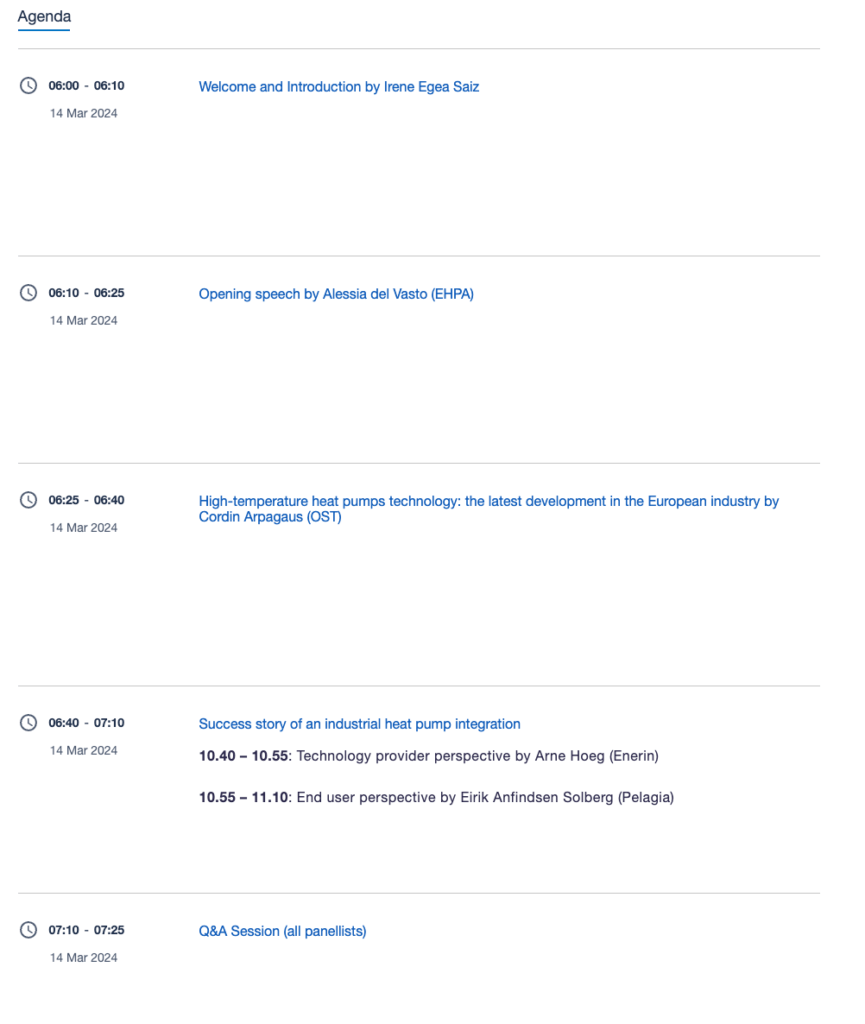 The webinar comes a few months after the European Commission’s decision to postpone the Heat Pump Action Plan until after the EU elections. Policy support is the vessel through which we can achieve the decarbonisation of the European industry, and a call to action is needed to restate that high-temperature heat pumps are one of the most valid means leading to energy savings and CO2 emissions reduction of the industry.