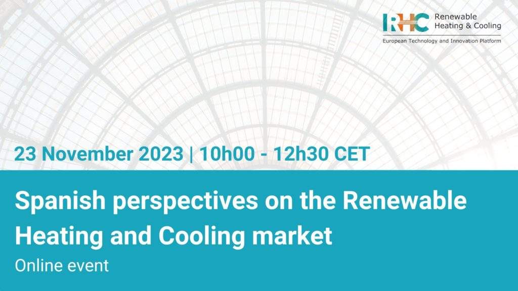 The National Round Table: Spanish perspectives on the Renewable Heating and Cooling market is part of the European Technology and Innovation Platform on Renewable Heating & Cooling (RHC-ETIP) and represents a series of national panel discussions and presentations involving market actors and other relevant stakeholders. This event is at an opportune time due to the current emphasis on clean and efficient heating and cooling, aiming at connecting the European and local perspectives. With the speakers, providing their vision for 100% Renewable Heating and Cooling in Europe and outlining the main challenges in achieving this goal, with a detailed focus on the market conditions in Spain. This webinar follows similar National Round Tables in Estonia, Finland, Lithuania, The Netherlands, Ireland, regarding Innovative Research and initiatives from the public and private sectors.